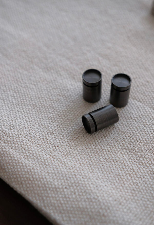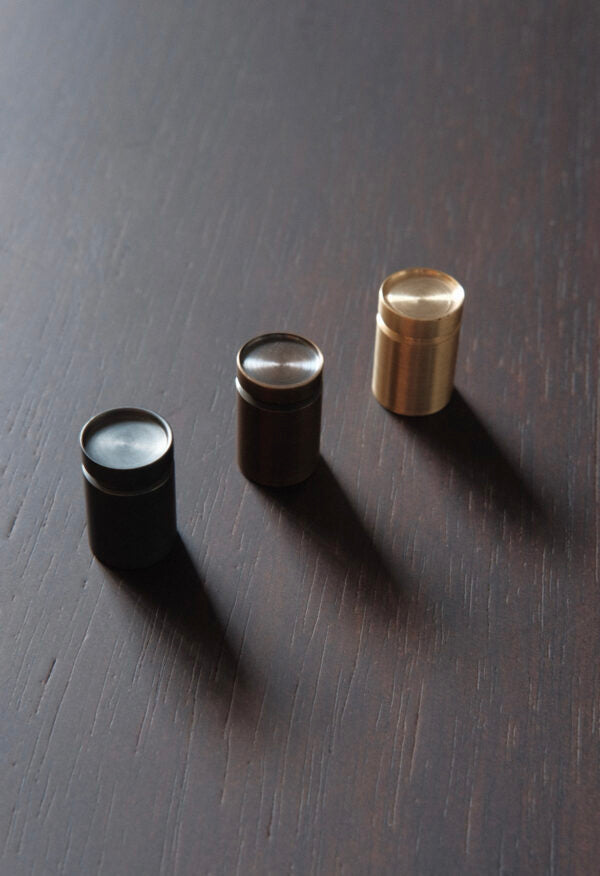 Puxador desenvolvido manualmente em latão e inox.