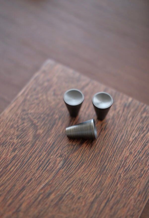 Puxador desenvolvido manualmente em latão e inox.