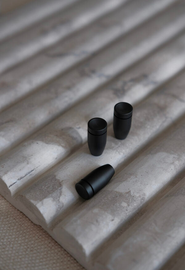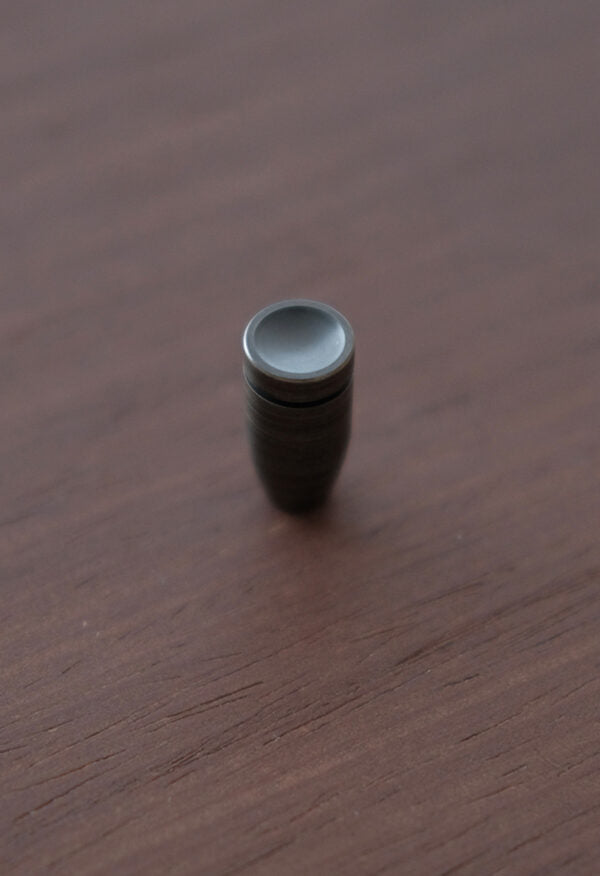 Puxador desenvolvido manualmente em latão e inox.